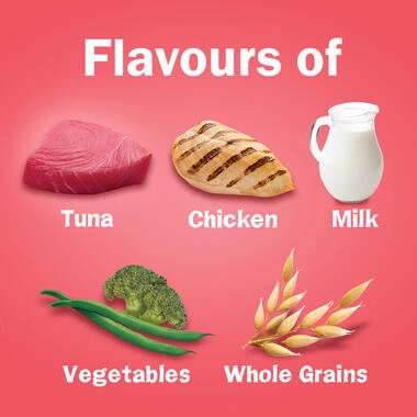 • Tuna, Chicken, Milk, Vegetables & Whole Grains Flavour.