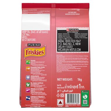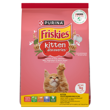 Unlock a magical world of discovery for your kitten with every mouthful of FRISKIES® Kitten Discoveries Dry Cat Food. This delicately sized kibble is made with so many exciting and scrumptious flavours like tuna, chicken, milk, vegetables and whole grains, it will be sure to satisfy your kitten’s craving for adventure. FRISKIES® Kitten Discoveries provides your cat a complete and balanced nutrition, contains protein, essential fatty acids with Omega 3 and 6, antioxidants, taurine, calcium and vitamin D to meet your kitten’s nutrition needs.