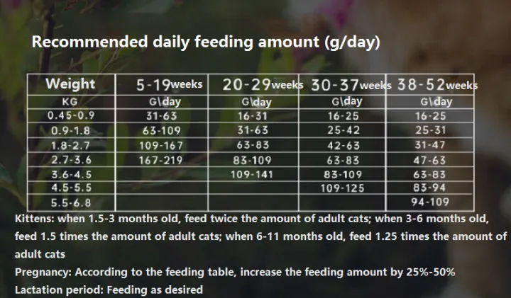 HOW TO FEED: The tool below provides a starting point, to be adjusted as needed to maintain optimum weight and peak conditioning. We suggest monitoring your pet’s weight and adjusting rations as needed. We recommend feeding twice daily and always keeping fresh, clean water available.
